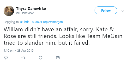 Reporter Nicole Cliffe also took to Twitter to weigh in on the Prince William cheating rumour.Cliffe tweeted: "Wills would absolutely have told Harry about the affair. And I think that Harry was like ‘this is exactly what ruined our childhoods'."This led to reactions from Twitter users as they condemned Harry for hurting a "good woman".However, according to Daily Mail's royal reporter Richard Kay, the cheating rumours are all fake news.Richard wrote: "Both sides have considered legal action, but, because none of the reports have been able to offer any evidence about what the so-called dispute is about, they have chosen to ignore it...These hurtful rumors of a fall-out are simply false."The Daily Beast reports that at least one British publication has been served with legal warnings by the royals' lawyers after they published details of the rumours.One of the letters from the royals' lawyers allegedly stated: In addition to being false and highly damaging, the publication of false speculation in respect of our clients’ private life also constitutes a breach of his privacy pursuant to Article 8 of the European Convention to Human Rights. Below are reactions from Twitter users to Prince William's alleged cheating scandal.
