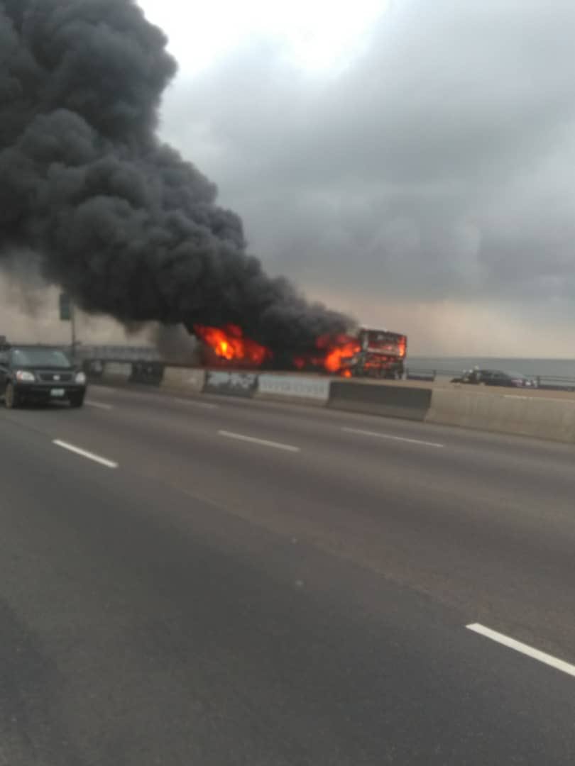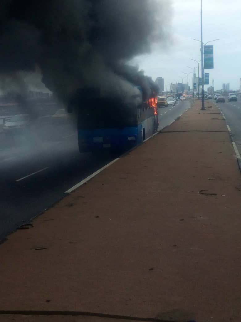 The post BRT bus in flames on 3rd mainland bridge Lagos (photos) appeared first on Linda Ikeji Blog.